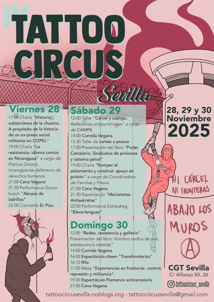 Los días 28, 29 y 30 de Noviembre estaremos, una vez más, recordando a lxs que siguen privadxs de su libertad, hablando y reflexionando de lucha anticarcelaria pinchando tinta.